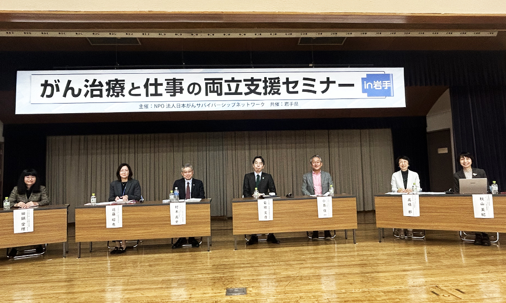 当事者や企業の立場、医療者等の多角的な視点からのセミナーはおかげさまで100名もの皆さまにご参加頂き、大盛会となりました。がん経験者や企業・医療の関係者等々の皆さまにとって少しでも参考になり、岩手県での両立支援の今後の推進のきっかけになればと願っています。